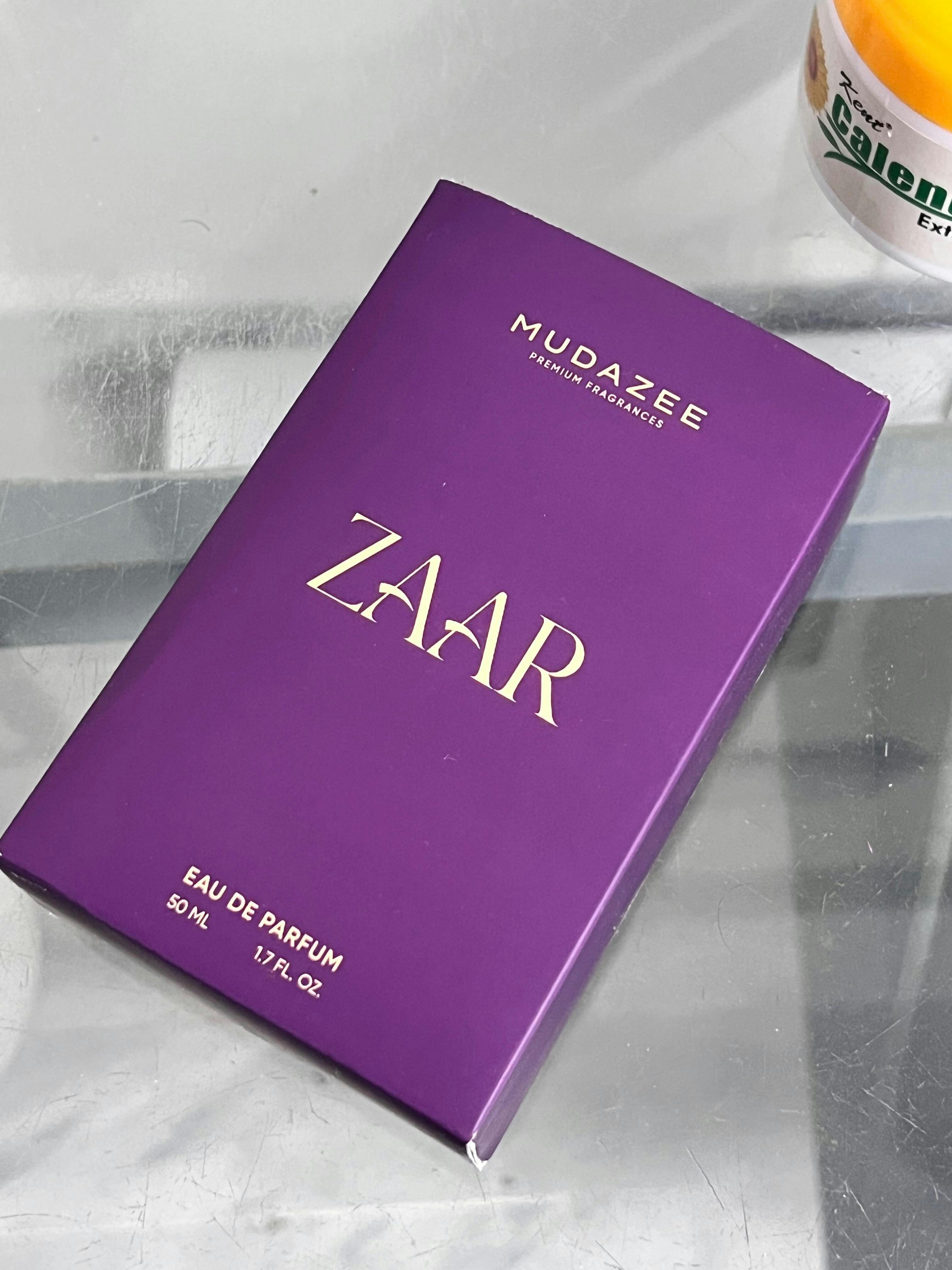 ZAAR perfume by MUDAZEE reminiscent of popular Issey Miyake type fragrances. its for men.this fragrance opens with a lively burst of citrus freshness, instantly creating a clean and energetic feel. As it moves into the heart, the blend of aromatic herbs, green notes, and soft florals adds a crisp, natural, and slightly elegant touch. The dry-down becomes smooth and grounded with woody warmth and subtle spicy freshness, making the scent long-lasting and balanced.